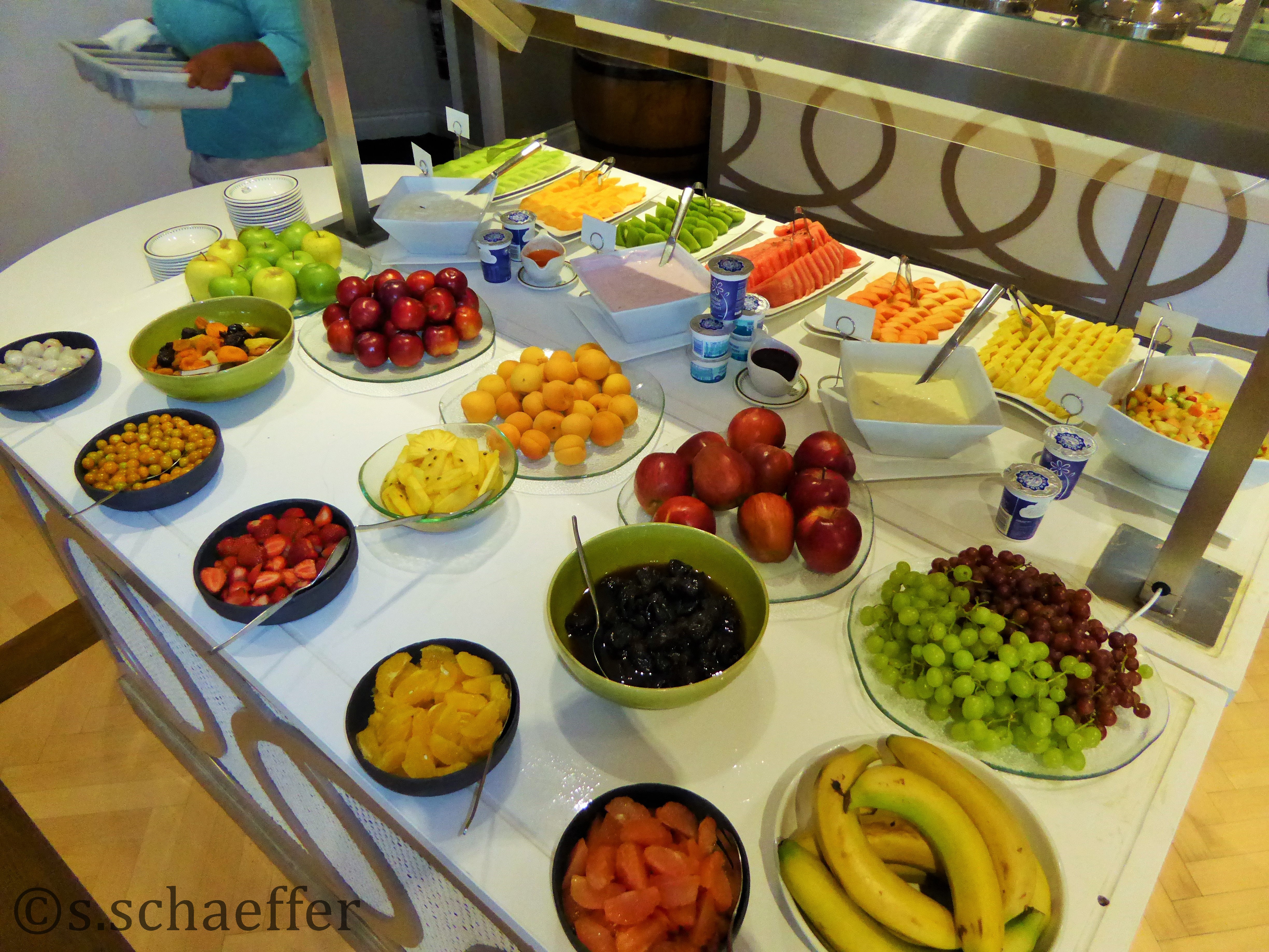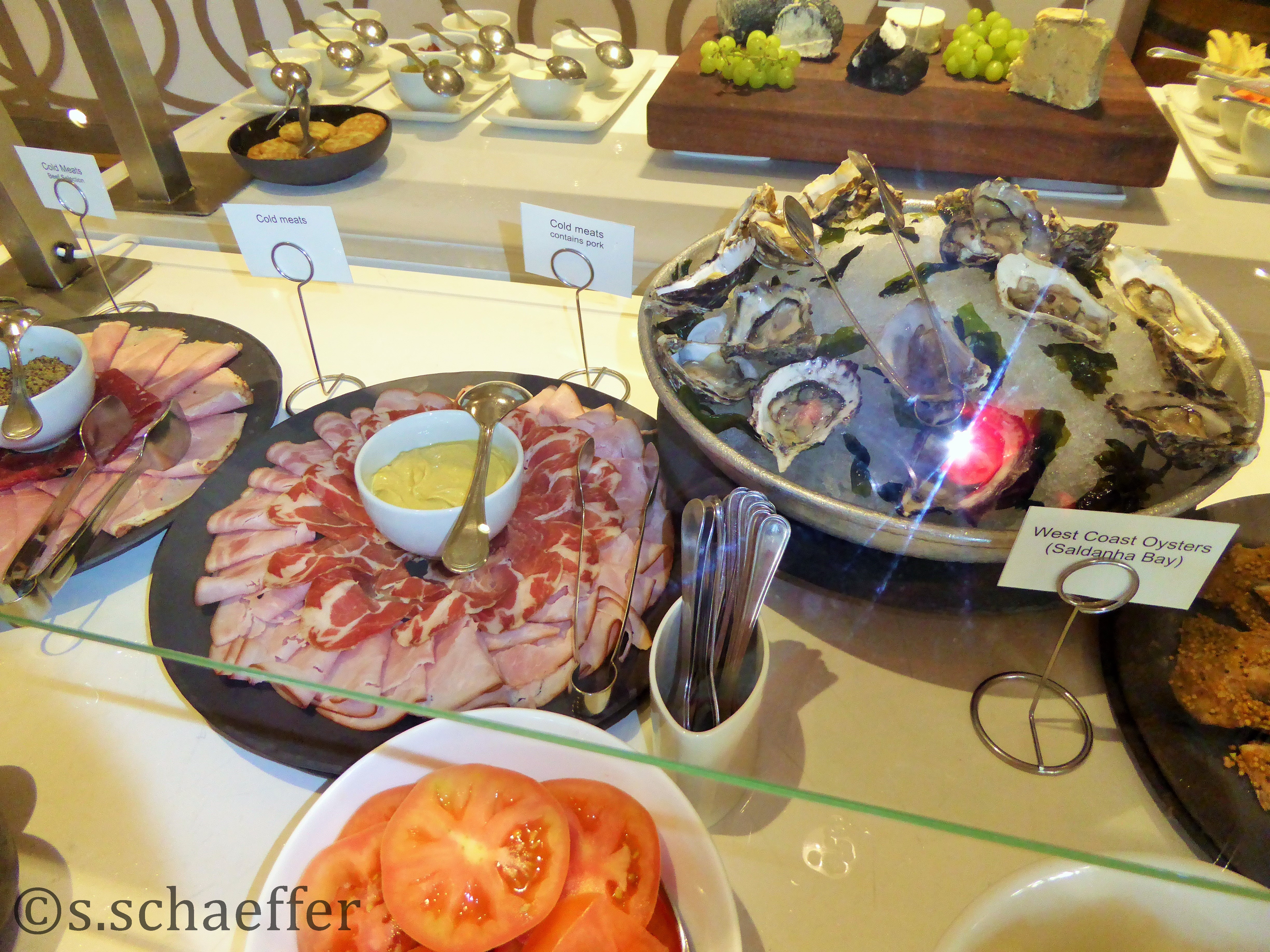 Aufschnitt vom Feinsten ebenso wie Fisch und frische Austern. Warmes britisches Frühstück wie Bacon and Eggs, Sausages, Beans, Tomates.