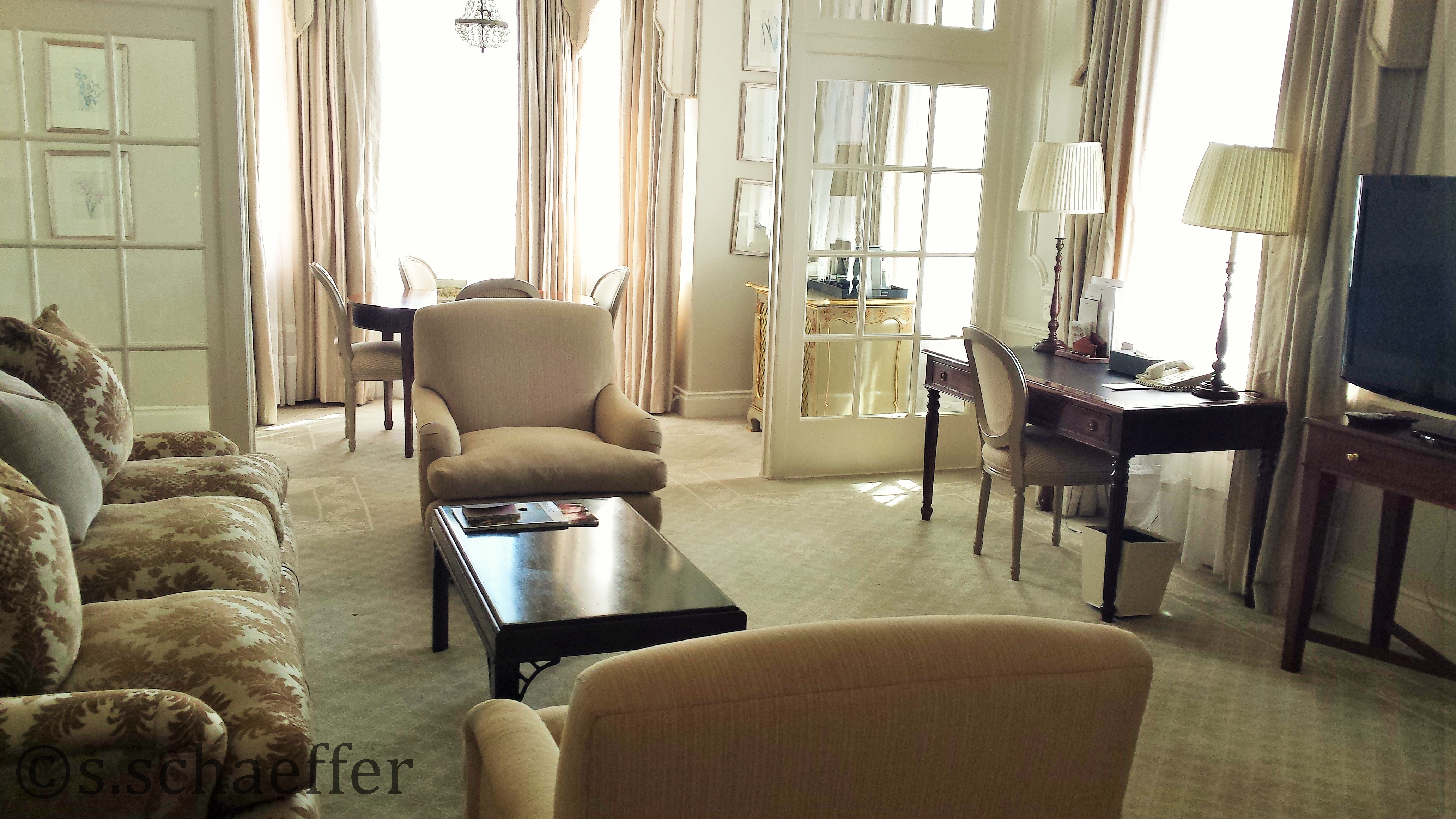 Es bietet 201 Gästezimmer, davon sind 57 Suiten – und wir haben als upgrade eine Junior-Eck-Suite zugeteilt bekommen. Wau!