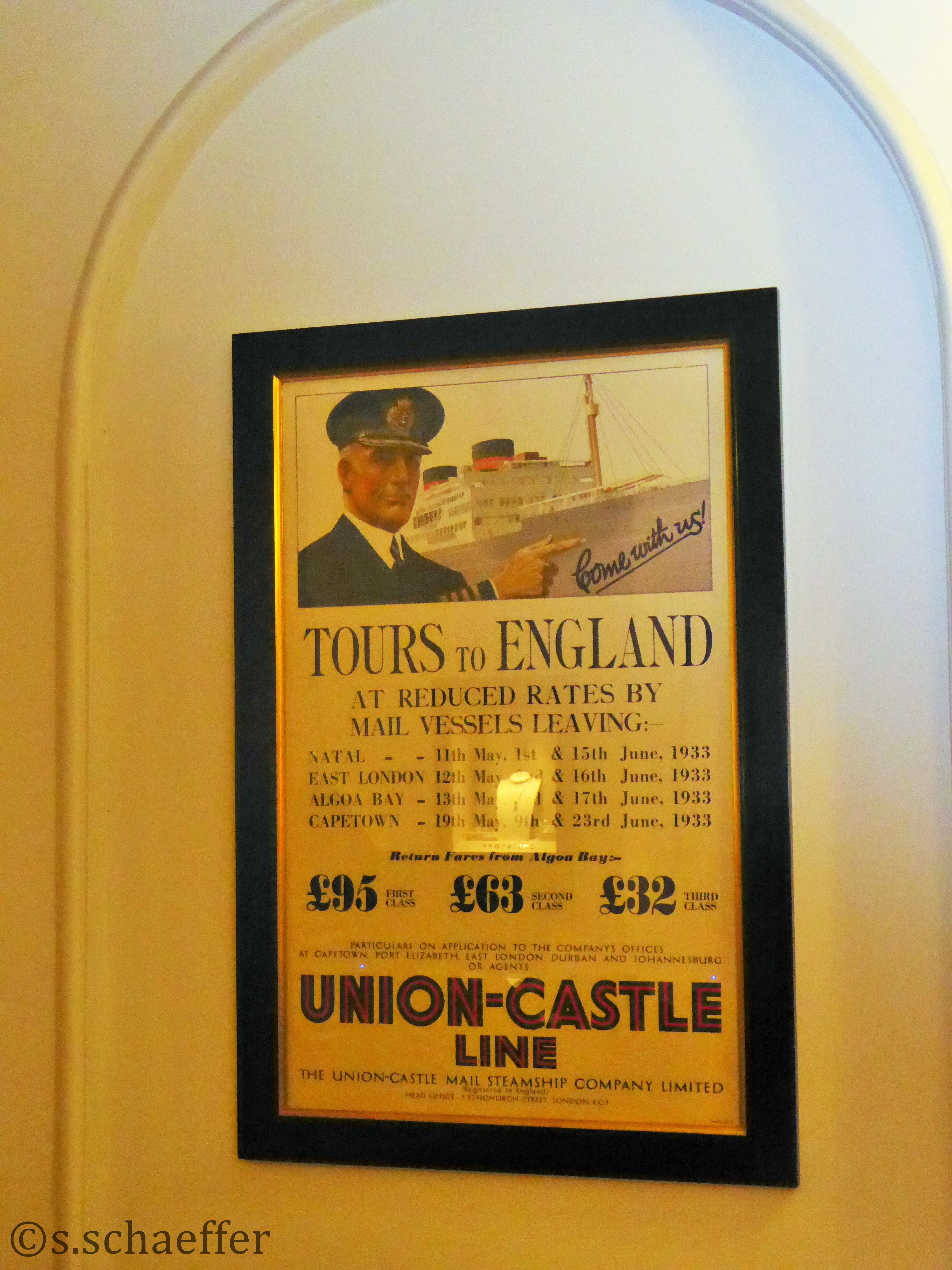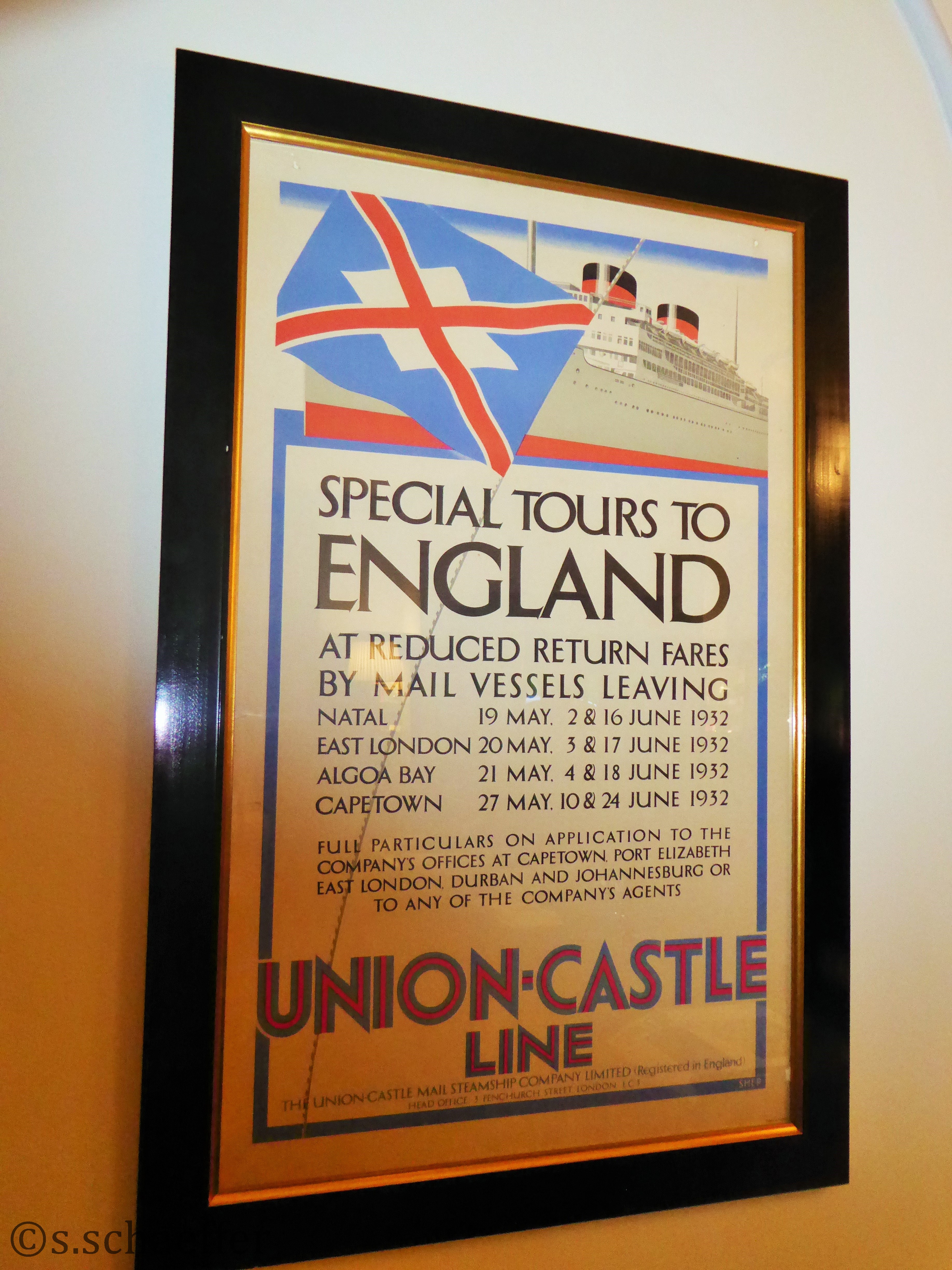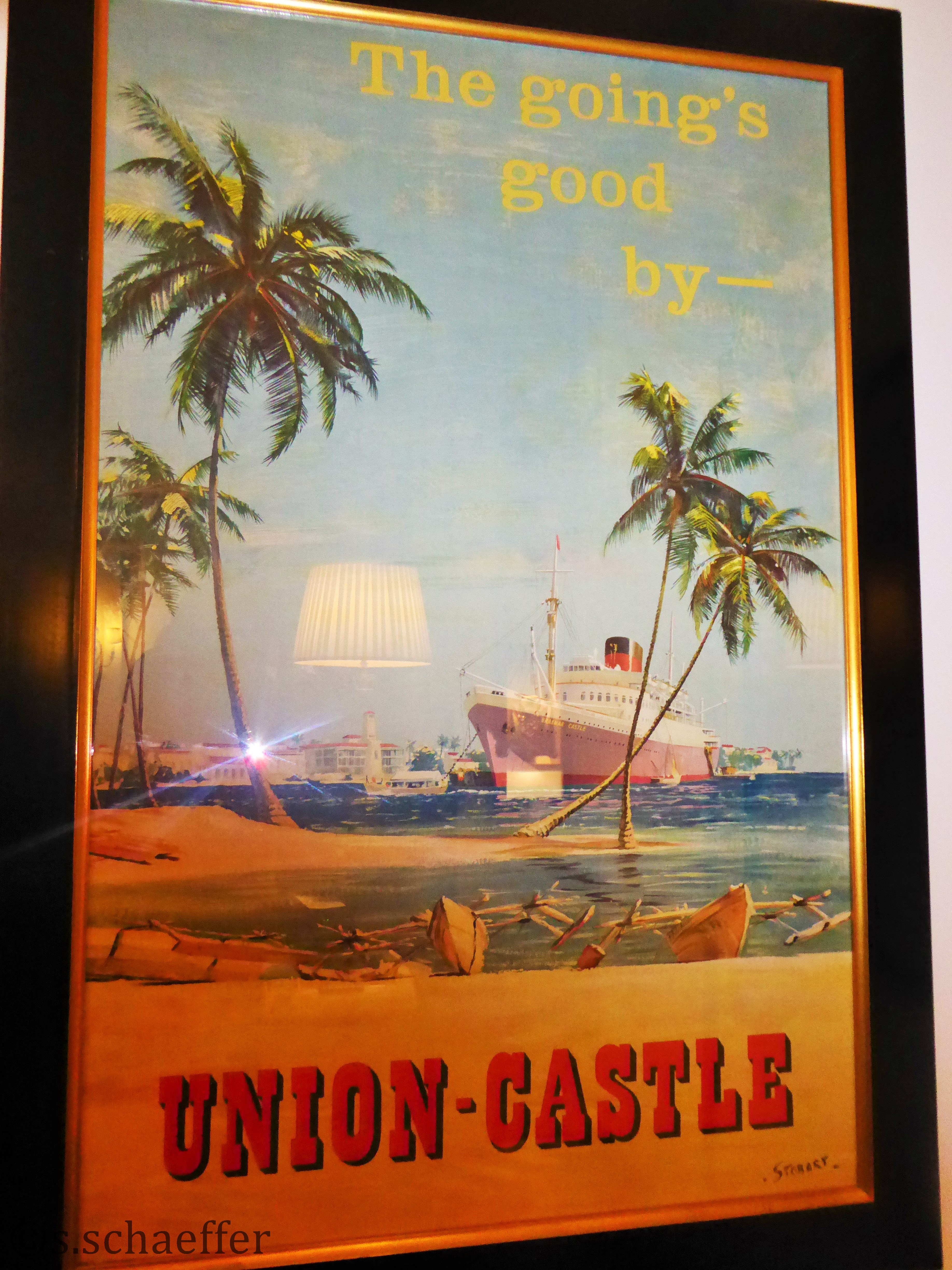 Nein, keine Bilder, es sind alte Plakate, die da gerahmt von vergangenen Zeiten erzählen. Zu sehen: Werbung für Kreuzfahrten aus dem ersten Jahrzehnt des letzten Jahrhunderts!
