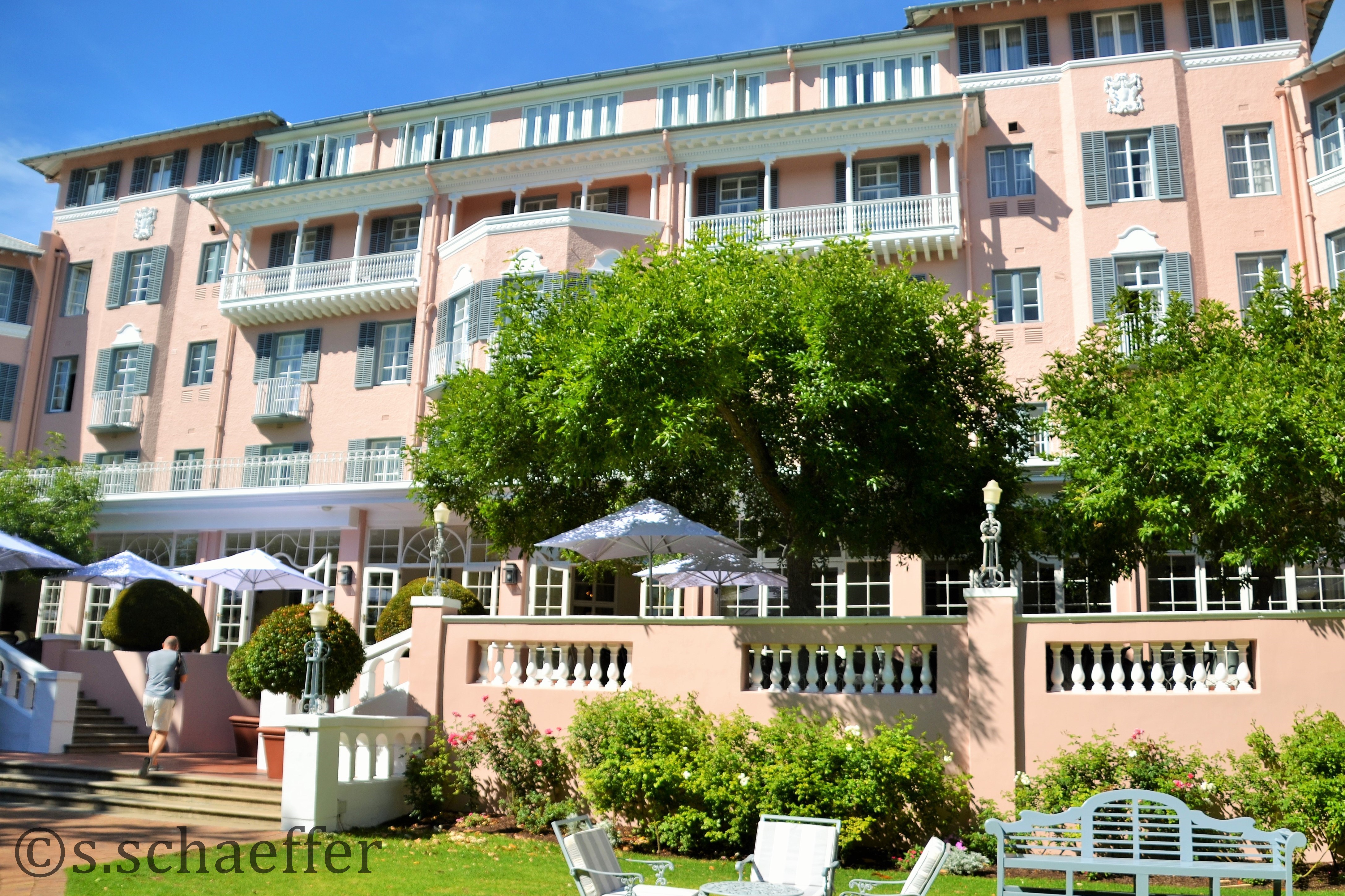 Und dann sehen wir das Hotel das erste Mal. Unverkennbar ist der rosafarbene Außenanstrich des Baus. Die Capetonians sprechen deshalb auch liebevoll von ihrer „Pink Nelly“.