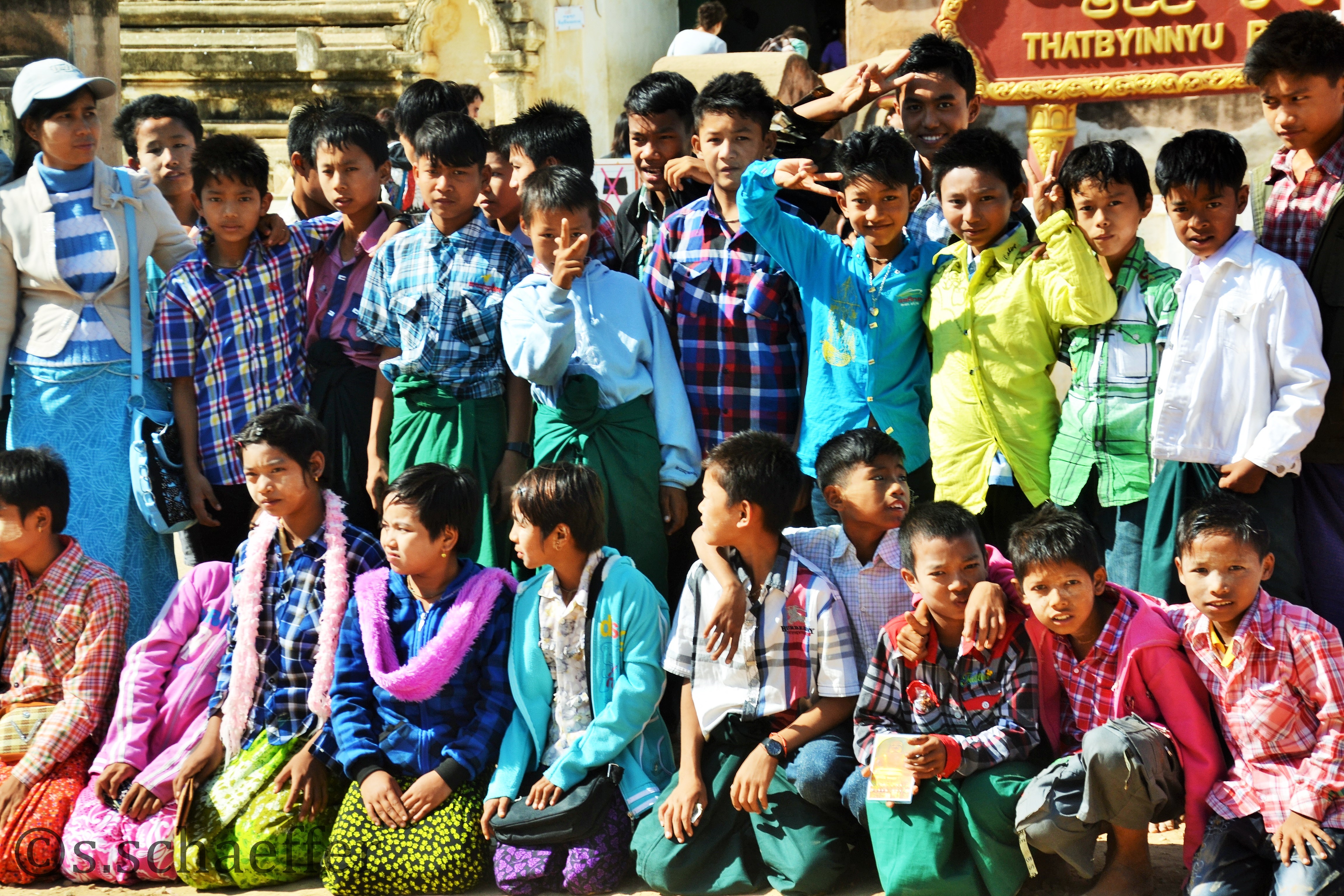So heißt der Werbeslogan dieses uns noch so fremden Landes. Und er ist wahr: Myanmar glitzert und glänzt. Überall verstreut zwischean Bäumen und Büschen sehen wir unzählige große und kleine Stupas wie Sahnehäubchen auf einer Torte sitzen, deren vergoldete Spitzen angestrahlt von der Sonne in lodernden Flammen zu stehen scheinen.